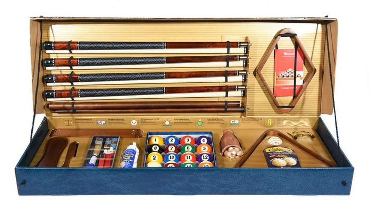 The Aramith Pool Table Accessories Kit. The Pro Cup Game table accessory kit is the ultimate edition to pool table and game room! It includes four premium 2-piece pool cue sticks with the premium ball set, this kit has all the bells and whistles to play and enjoy your pool table. This Aramith accessories kit is truly considered the best among all billiards enthusiasts. The Aramith Pool Table Pro Cup Accessories Kit includes FREE SHIPPING and everything below!