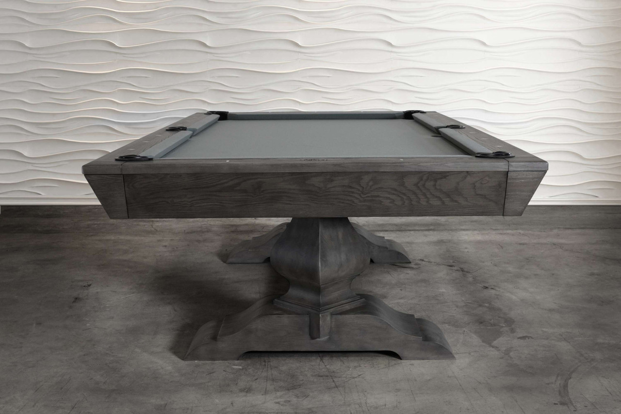 The Birdy Slate Pool Table is a contemporary chic billiards table by Nixon Billiards. It exemplifies pure class with its carefully crafted refectory design. The Birdy stands alone in being the first of its kind with tapered modern rails that’s one of the most sought out looks in North America. The curators of Nixon Billiards developed the Birdy to feature a dining top option to become a truly desirable multipurpose piece of furniture and décor. Fashioned with solid white mahogany wood and featured in Nixon Billiards exclusive Grayson Grey finish, the Birdy is surely to become the focal point of any home or office it chooses to appear in!