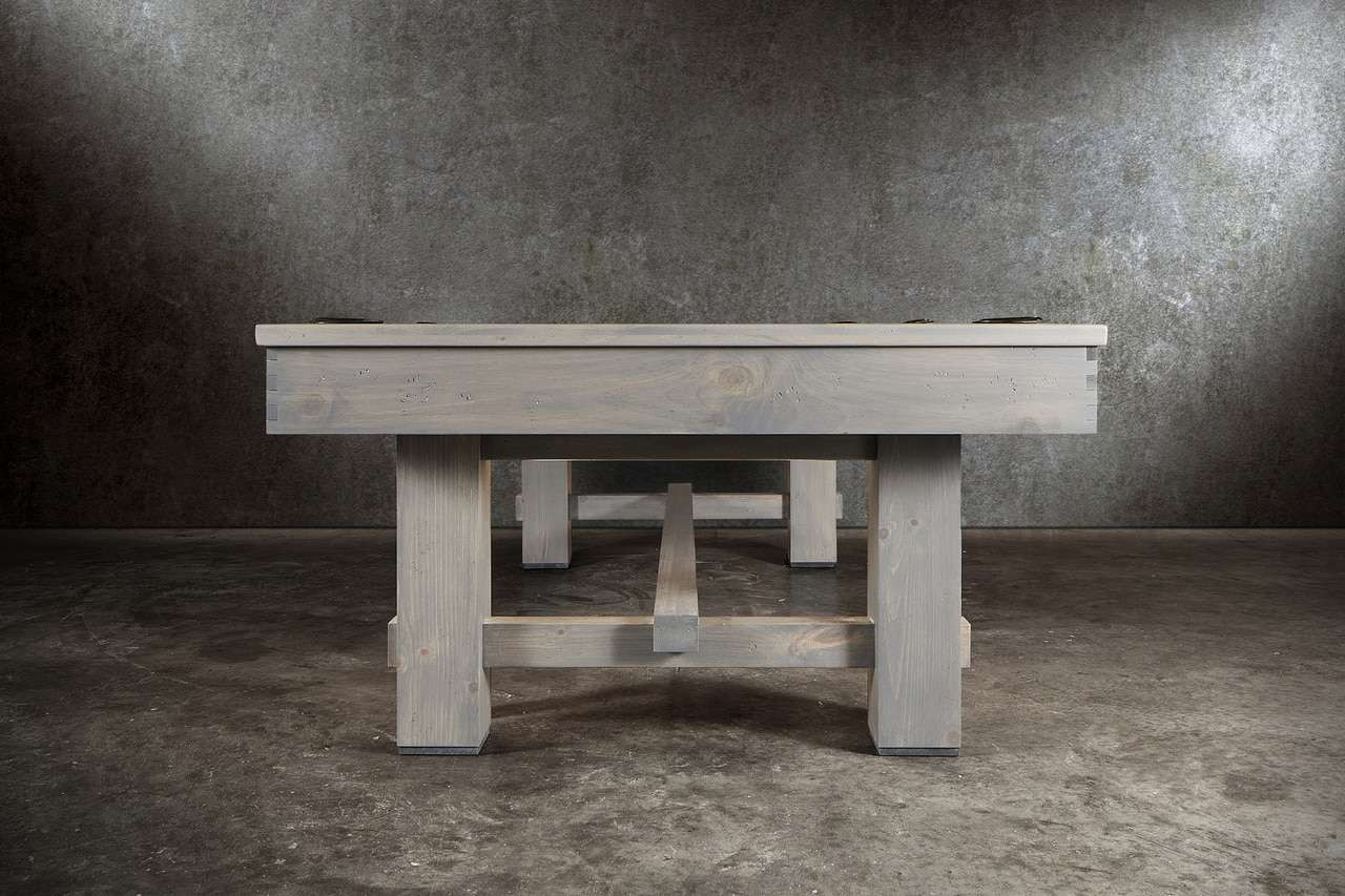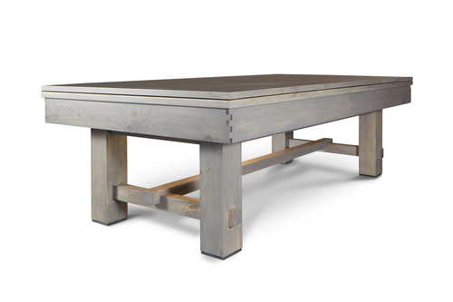 Try your hand at a game of 8-ball on the good ol' fashioned, USA-made Churchill pool table from Doc & Holliday. This handmade slate pool table is evocative of ski trips in the Rockies or a home-cooked meal in the Midwest with its wood frame and classic finish, undoubtedly making your house a feel like a home. The Churchill is accented by modern rails with buffalo nickel sites and leather drop pockets. Purchase your Churchill pool table in 7 ft, 8 ft, or 9 ft sizes. Dining top options are also available. Shipping for FREE all across the continental USA.
