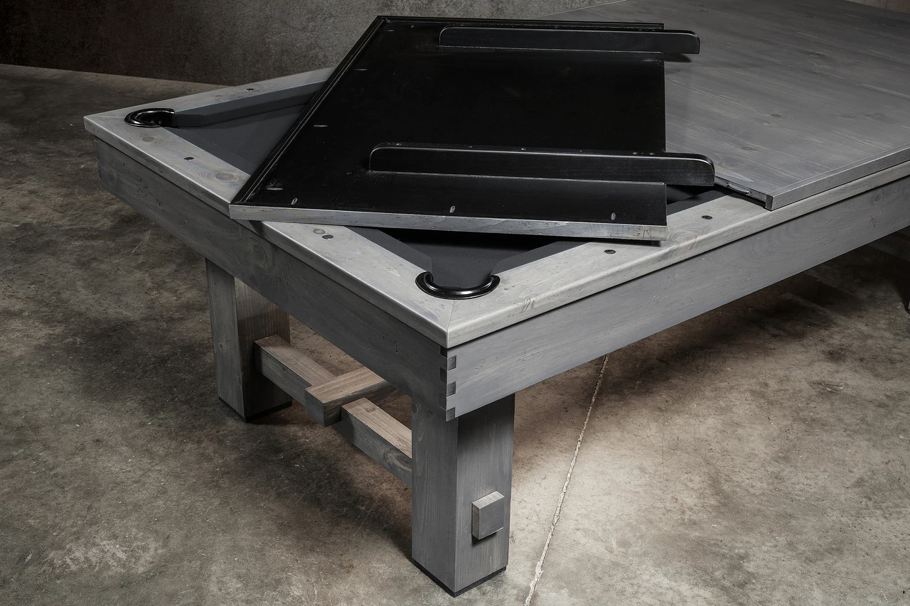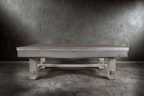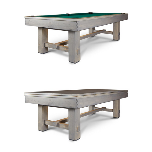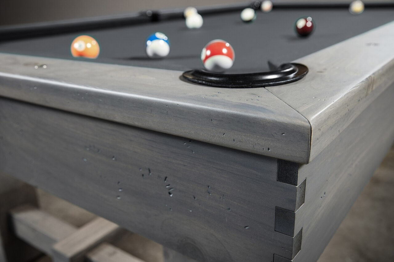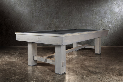 Try your hand at a game of 8-ball on the good ol' fashioned, USA-made Churchill pool table from Doc & Holliday. This handmade slate pool table is evocative of ski trips in the Rockies or a home-cooked meal in the Midwest with its wood frame and classic finish, undoubtedly making your house a feel like a home. The Churchill is accented by modern rails with buffalo nickel sites and leather drop pockets. Purchase your Churchill pool table in 7 ft, 8 ft, or 9 ft sizes. Dining top options are also available. Shipping for FREE all across the continental USA.