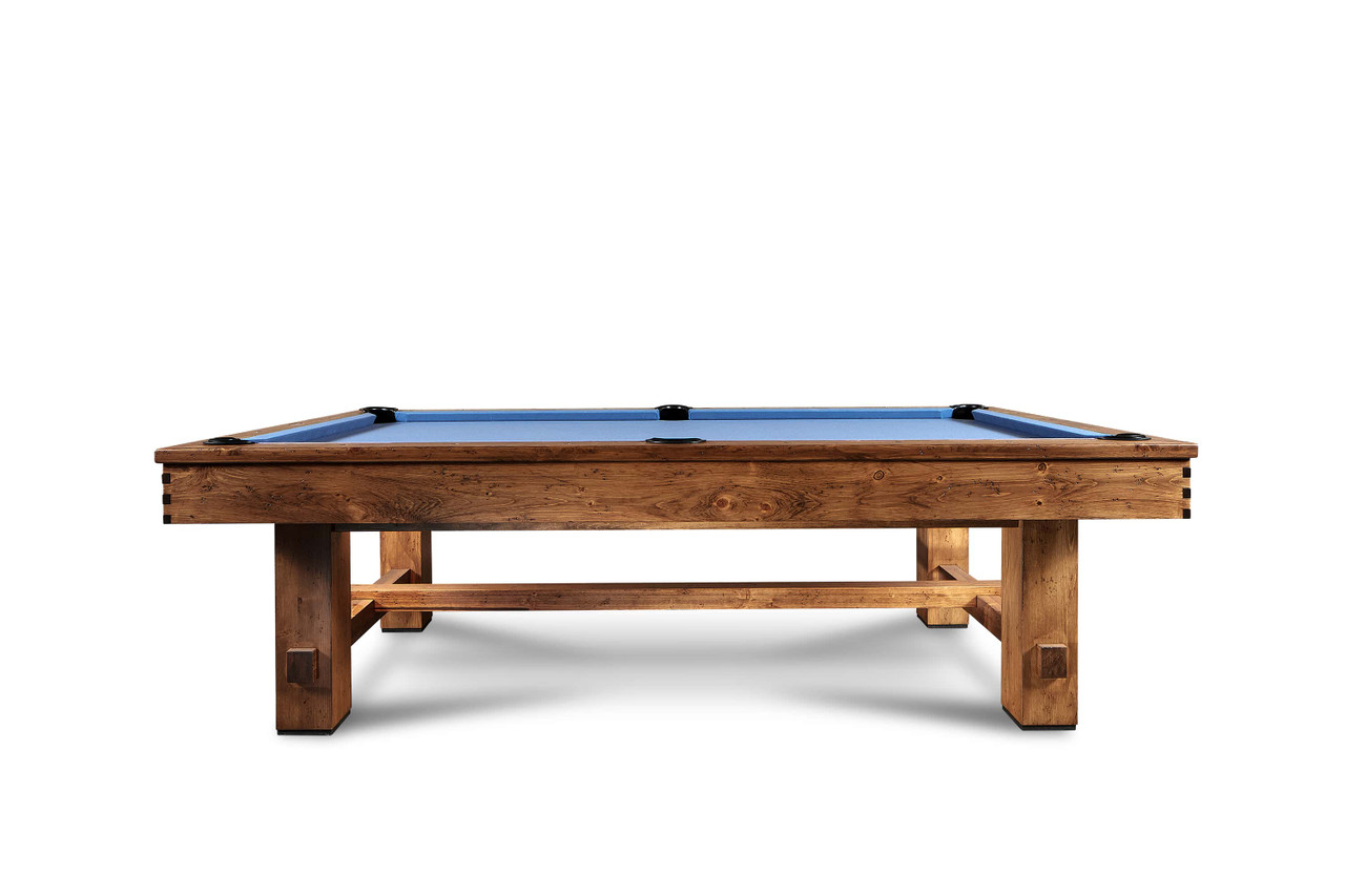 Try your hand at a game of 8-ball on the good ol' fashioned, USA-made Churchill pool table from Doc & Holliday. This handmade slate pool table is evocative of ski trips in the Rockies or a home-cooked meal in the Midwest with its wood frame and classic finish, undoubtedly making your house a feel like a home. The Churchill is accented by modern rails with buffalo nickel sites and leather drop pockets. Purchase your Churchill pool table in 7 ft, 8 ft, or 9 ft sizes. Dining top options are also available. Shipping for FREE all across the continental USA.