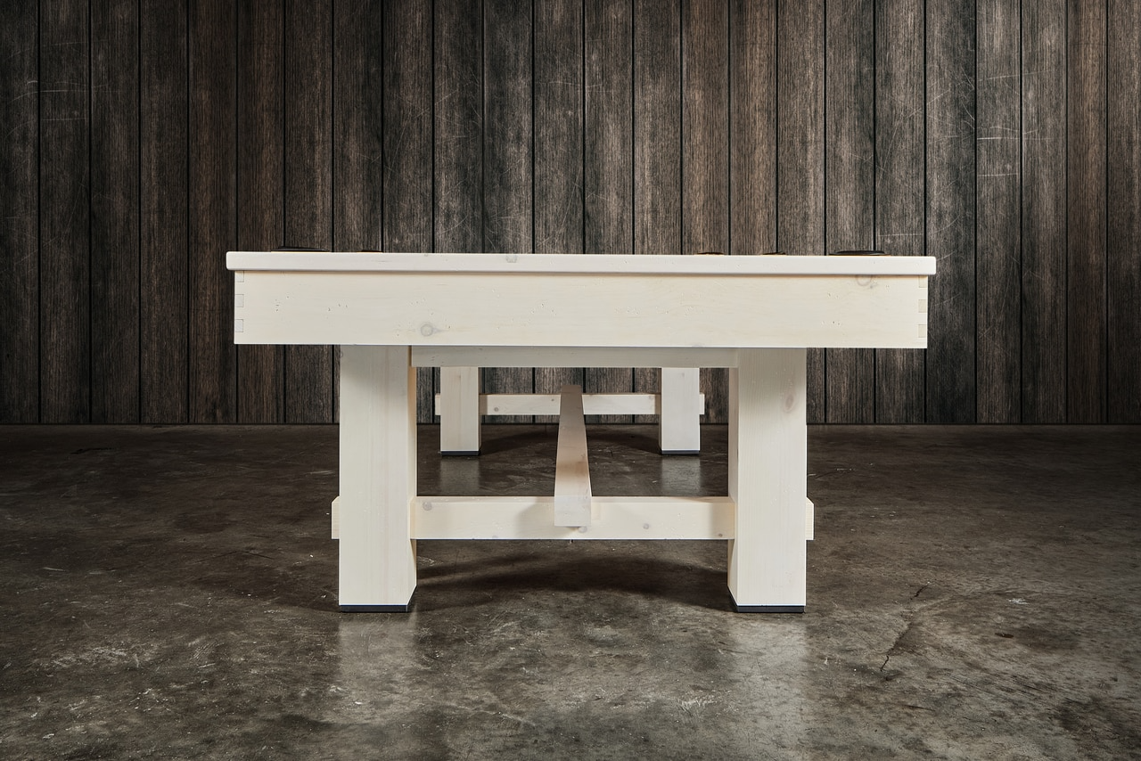Try your hand at a game of 8-ball on the good ol' fashioned, USA-made Churchill pool table from Doc & Holliday. This handmade slate pool table is evocative of ski trips in the Rockies or a home-cooked meal in the Midwest with its wood frame and classic finish, undoubtedly making your house a feel like a home. The Churchill is accented by modern rails with buffalo nickel sites and leather drop pockets. Purchase your Churchill pool table in 7 ft, 8 ft, or 9 ft sizes. Dining top options are also available. Shipping for FREE all across the continental USA.