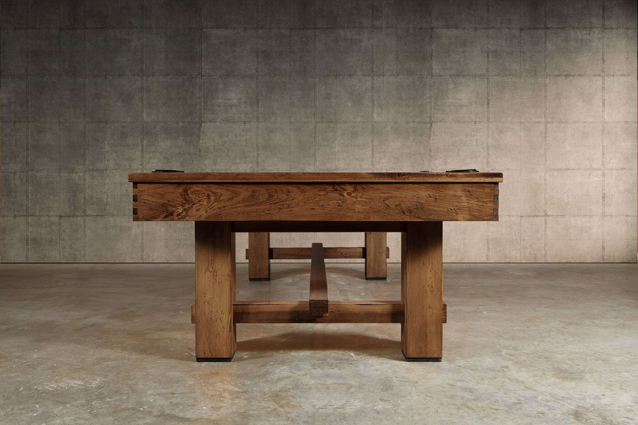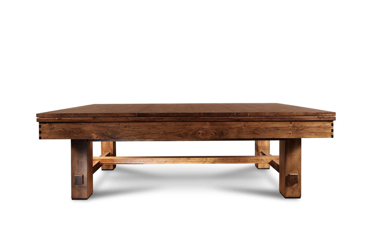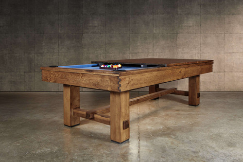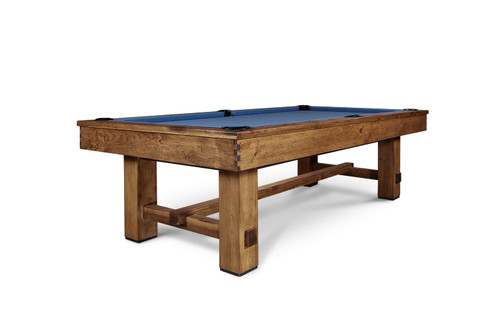 Try your hand at a game of 8-ball on the good ol' fashioned, USA-made Churchill pool table from Doc & Holliday. This handmade slate pool table is evocative of ski trips in the Rockies or a home-cooked meal in the Midwest with its wood frame and classic finish, undoubtedly making your house a feel like a home. The Churchill is accented by modern rails with buffalo nickel sites and leather drop pockets. Purchase your Churchill pool table in 7 ft, 8 ft, or 9 ft sizes. Dining top options are also available. Shipping for FREE all across the continental USA.