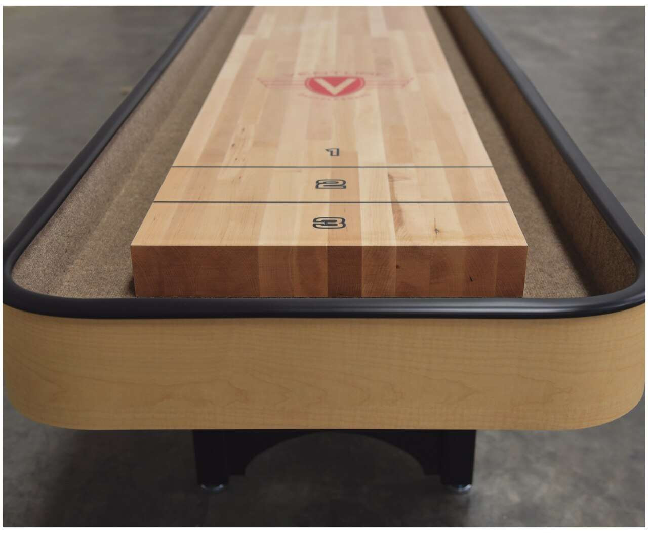 LIFETIME warranty for the playfield and finish against any manufacturer defects. Please note that wood has characteristics, which are outside the control of the manufacturer. Wood is a natural material and reacts to environmental conditions including, but not limited to, temperature and humidity. Wood can shrink and swell in response to the surrounding environment. In order to ensure stability of the wood, it is important that the shuffleboard be maintained in an environment with steady humidity and climatic adjusters installed properly. Natural variations of color and grain patterns within the playfield are not considered a manufacturing defect.