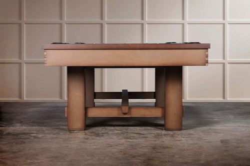 Step into a realm of pure gaming bliss with the rustic Hank Slate Dining Pool Table by Doc & Holliday. Impeccably crafted from solid pine and adorned with the exclusive Americana Chocolate finish, this table exudes unparalleled quality and style. Experience gameplay like never before, with its 1" Slate surface, K66 cushions, and genuine leather drop pockets. But that's not all - this table seamlessly transforms into an exquisite 2-in-1 dining table with the optional dining top. Customizable with Championship's premium Teflon spill-proof color felts, this is the epitome of luxury. Trust our highly recommended professional white glove service for the flawless installation you deserve. Take your game room to extraordinary heights with the mesmerizing Hank Dining Pool Table.
