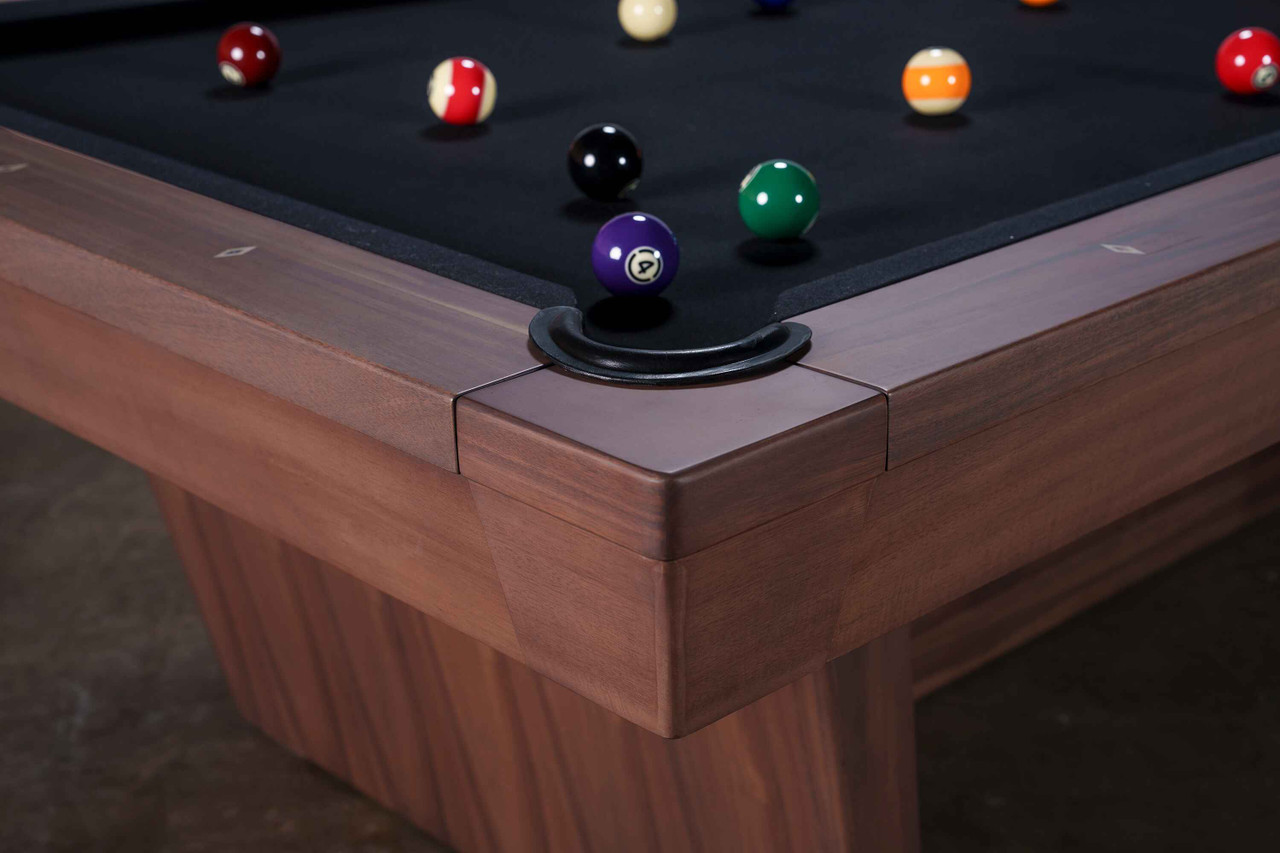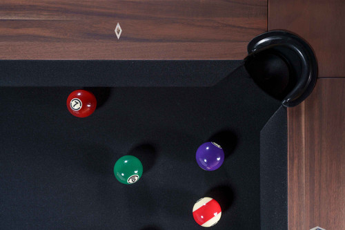 • Mother-of-pearl diamond billiard sights set flush into the rails