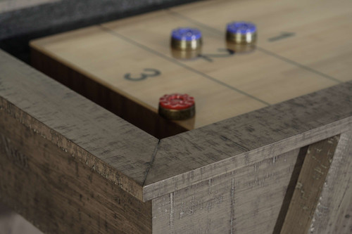 If you’ve been looking for a shuffleboard that’ll enhance your space, you’re going to love the Hunter Shuffleboard table. It’s the perfect addition to any game room or commercial space. Gather your family around this modern yet rustic looking Shuffleboard. You will enjoy a lifetime of fun pushing pucks on this beautiful model. Featuring rustic finishes combined with modern lines, this product will blend with any game room. The play surface is one of the best in the industry at 20” wide x 2.5” thick with tongue and groove poplar construction and multiple climate adjusters. In addition, the entire surface is protected by a nearly unbreakable 1/4” polymer coating You can start playing right away! Available in two finishes, Antique andBrushed Walnut. The Hunter Shuffleboard also includes free curbside delivery with liftgate service. We recommend using a professional installer, and we can refer you to one in your area!