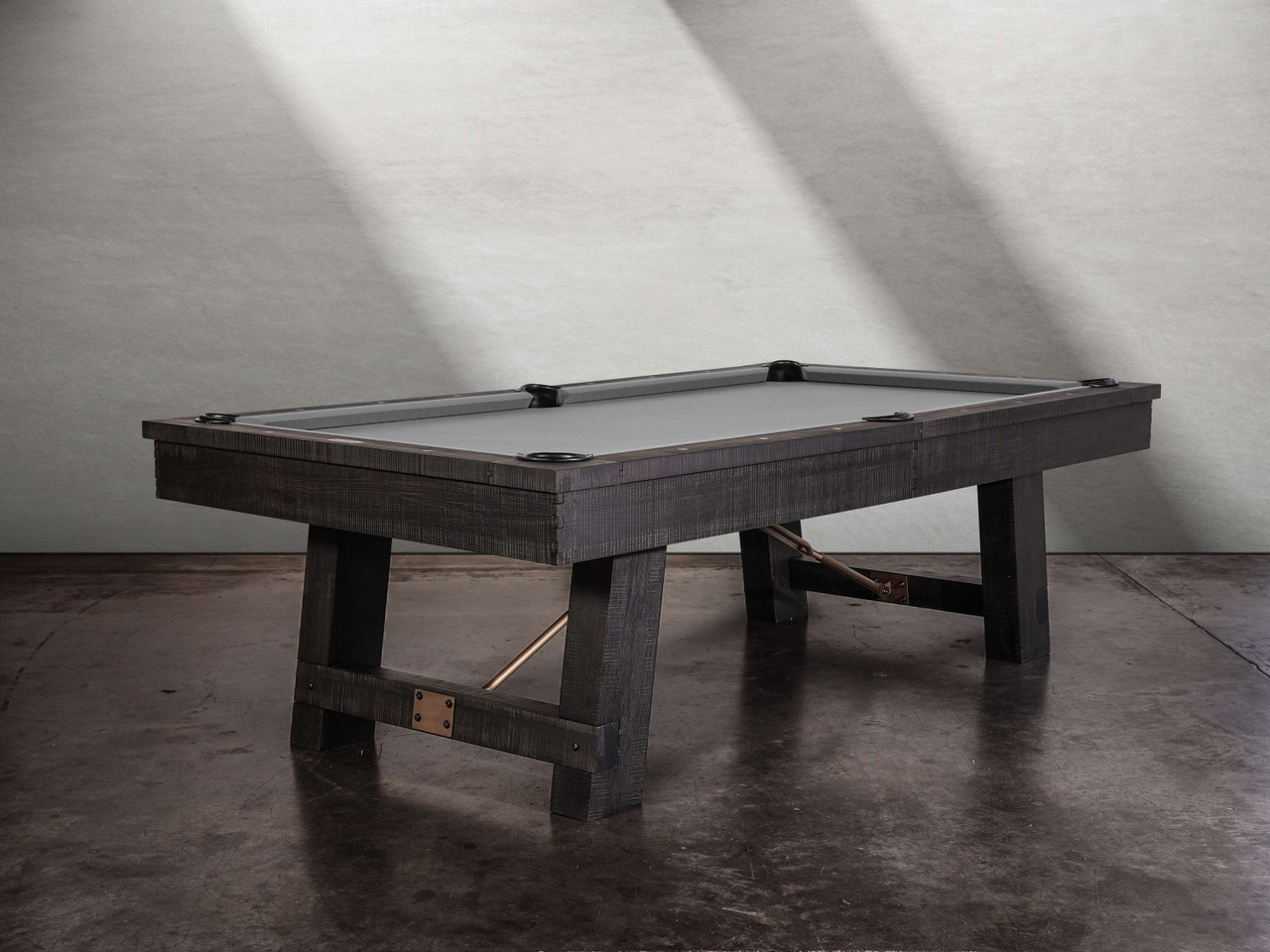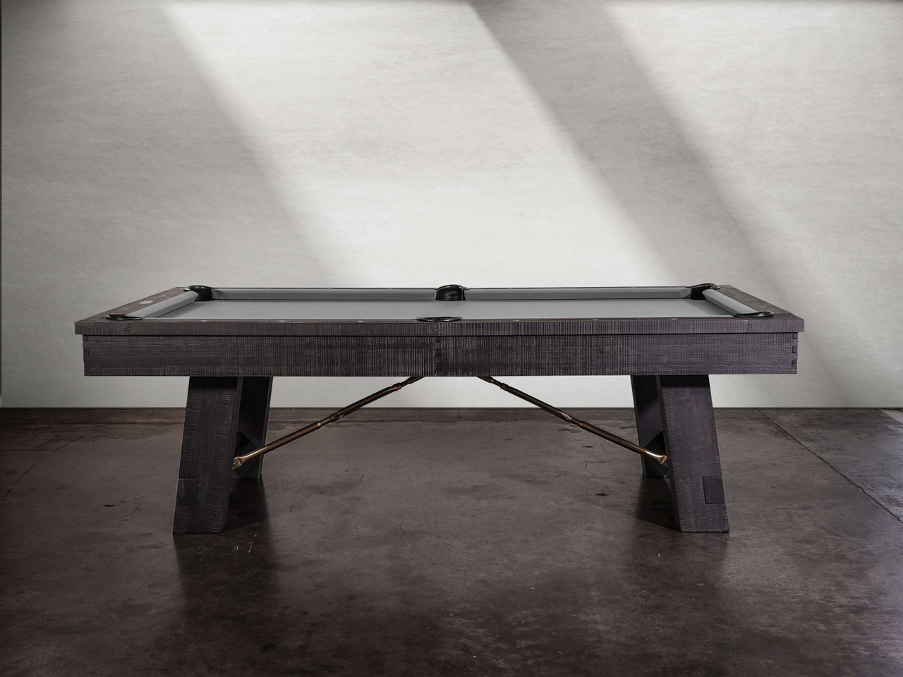 Experience the exceptional craftsmanship and elegance of the remarkable Isaac Slate Pool Table in distressed black & gold by Plank & Hide. This stunning pool table, constructed with pine wood and genuine leather drop pockets, is a must-have for modern game rooms, offices, and commercial bars. With its gold interlocking beams and luxurious distressed black décor, this table exudes opulence. Meticulous attention to detail and professional construction elements ensure an exceptional playing experience. Enjoy hassle-free shipping and professional installation with the white glove service. Elevate your game room experience with the extraordinary Isaac Slate Pool Table in distressed black & gold by Plank & Hide.