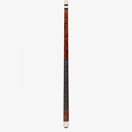 This classically-styled Pechauer cue features a rosewood-stained Birdseye Maple forearm and butt with black & white dashed rings, black & white double-pressed Irish linen wrap, and an 8-coat, hand sprayed, finish polished to a high gloss.