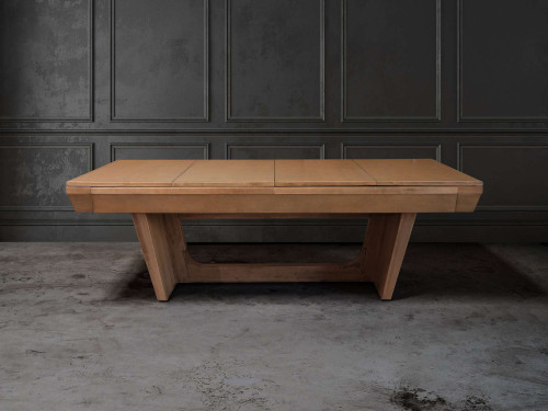 This table has a way of stealing attention without even trying. The tapered pedestal base leaves legroom open and generous, while the streamlined rail-and-apron profile keeps the design modern and sharp. It’s equally at home under a cluster of pendant lights in a downtown loft or anchoring a cozy gathering space where family tournaments turn into legendary rivalries.