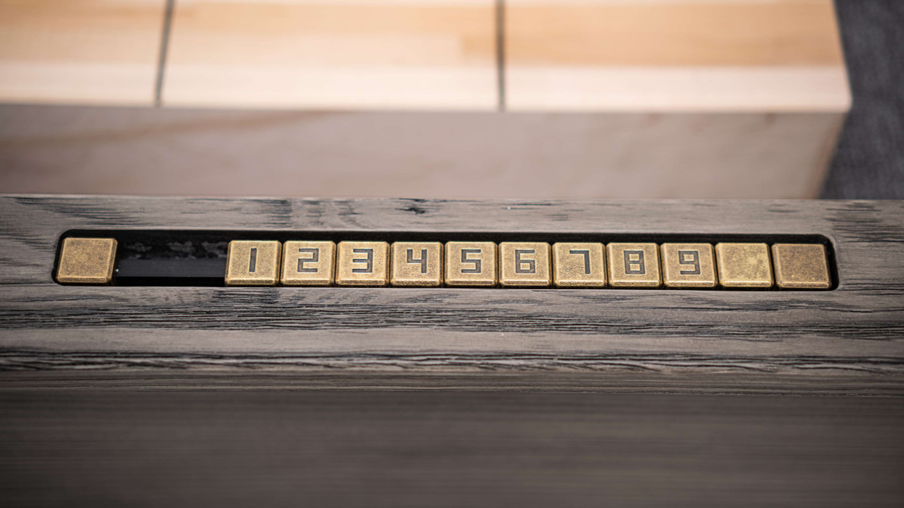 The Otis Shuffleboard Table is handcrafted with a solid maple playfield and designed to last, making it the perfect addition for any space you are looking to liven up a bit. The custom restoration elements like the smokehouse finish and metal turnbuckle hardware set this table apart from typical look alike shuffleboard tables. Get your Otis shuffleboard in 12' and 14' versions. Your purchase includes all playing accessories including pucks, wax, board wipe, abacus scorers, climate adjusters and instructions. Included FREE Shipping & Installation!
