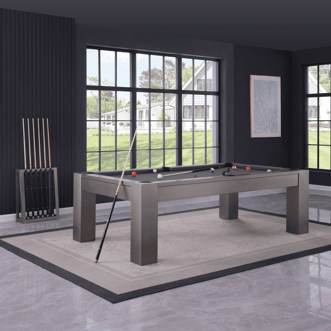 • Modern steel slate pool table with durable gun metal powder-coated finish