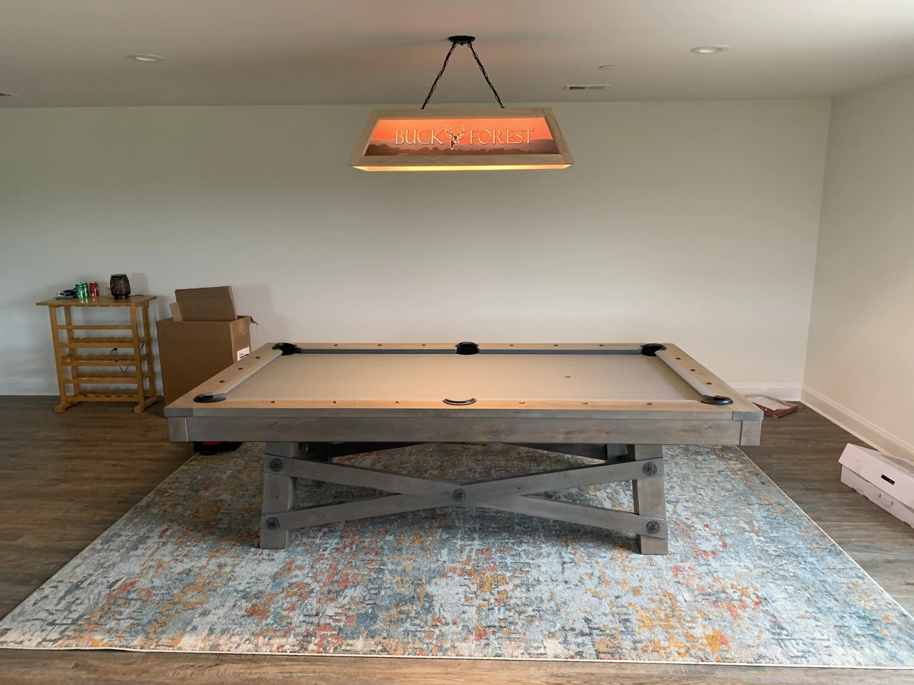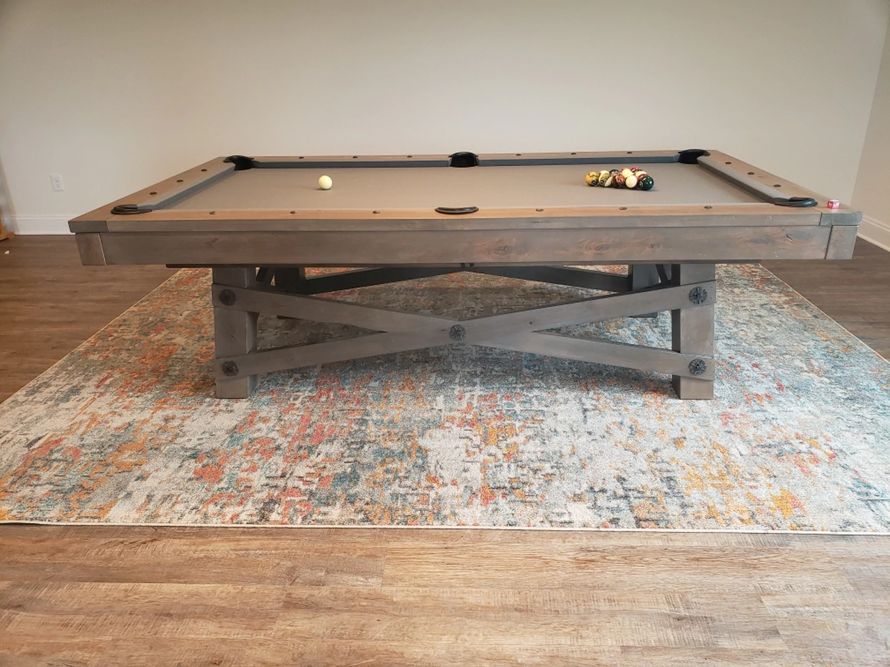 The 8' Powell Table is the ultimate evolution in reclaimed rustic style for the home. Featuring an optional hand rubbed and distressed oil finish the Powell table is at home in your modern urban residence or an upscale vacation home in the mountains. The Powell pool table is Made in the USA with solid hardwood construction in a silver sand wood finish and distressing creating a modern rustic appearance. Includes upgraded accessories and choice of color felt