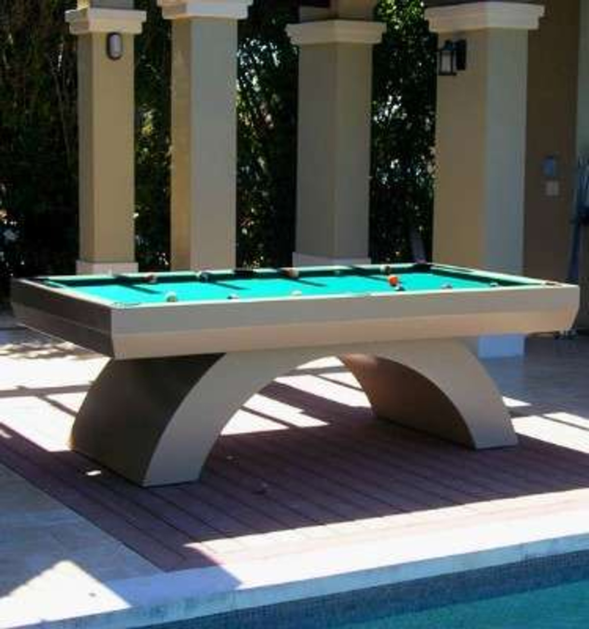 Up on the roof? Why not? The Prism lends itself to any outdoor location. The special arc leg assembly is one piece construction just like our upper frame assembly and slate. All SOLID metal here – no laminates. No outdoor or indoor pool table except ours is manufactured like this. Don’t settle for facsimiles. Our rainbow is the real thing.