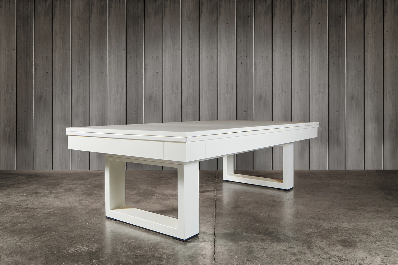 Brighten up any room both visually and physically with the alluring Santorini pool table from Doc & Holliday. With an eruption of color complimented by an elegant finish over immaculate wood, this handmade piece of craftsmanship is the perfect addition to your game room, den, living quarters, or recreational space. Available in 7 ft, 8 ft, or 9 ft, the Santorini is accented by modern maple with pro-sites and genuine leather drop pockets. Dining top options are also available. Shipping for FREE all across the contiguous USA.