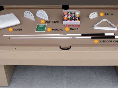 Every outdoor pool table arrives fully equipped. Along with the table, you get: Balls, Outdoor cue sticks, Cue rack, Brush, Triangle, Chalk, Table cover.